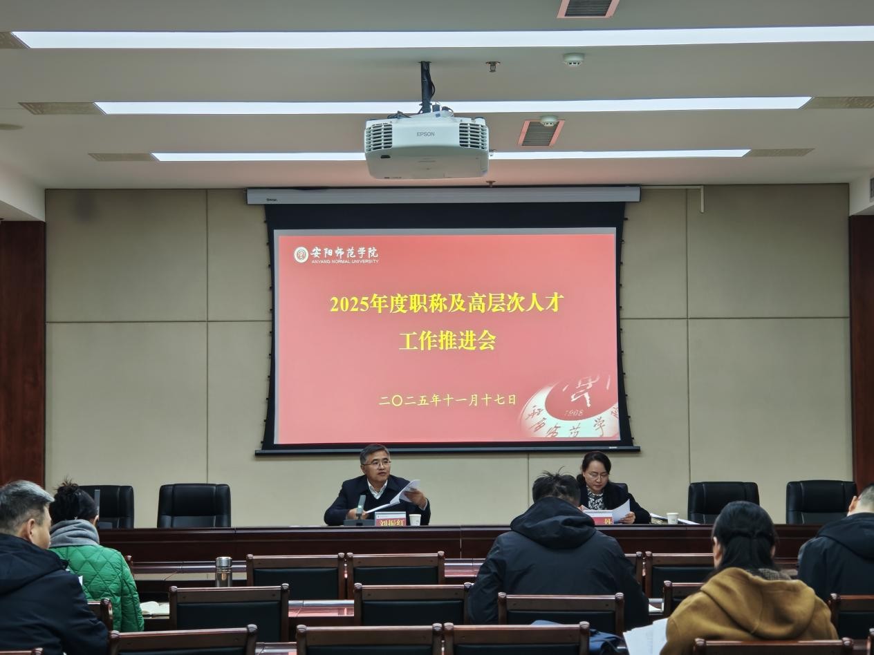 2025年度职称及高层次人才工作推进会在勤业楼A108会议室顺利召开。会议由人事处处长睢丹主持,副校长刘振红出席并讲话,各学院院长、人事处相关人员参加会议。